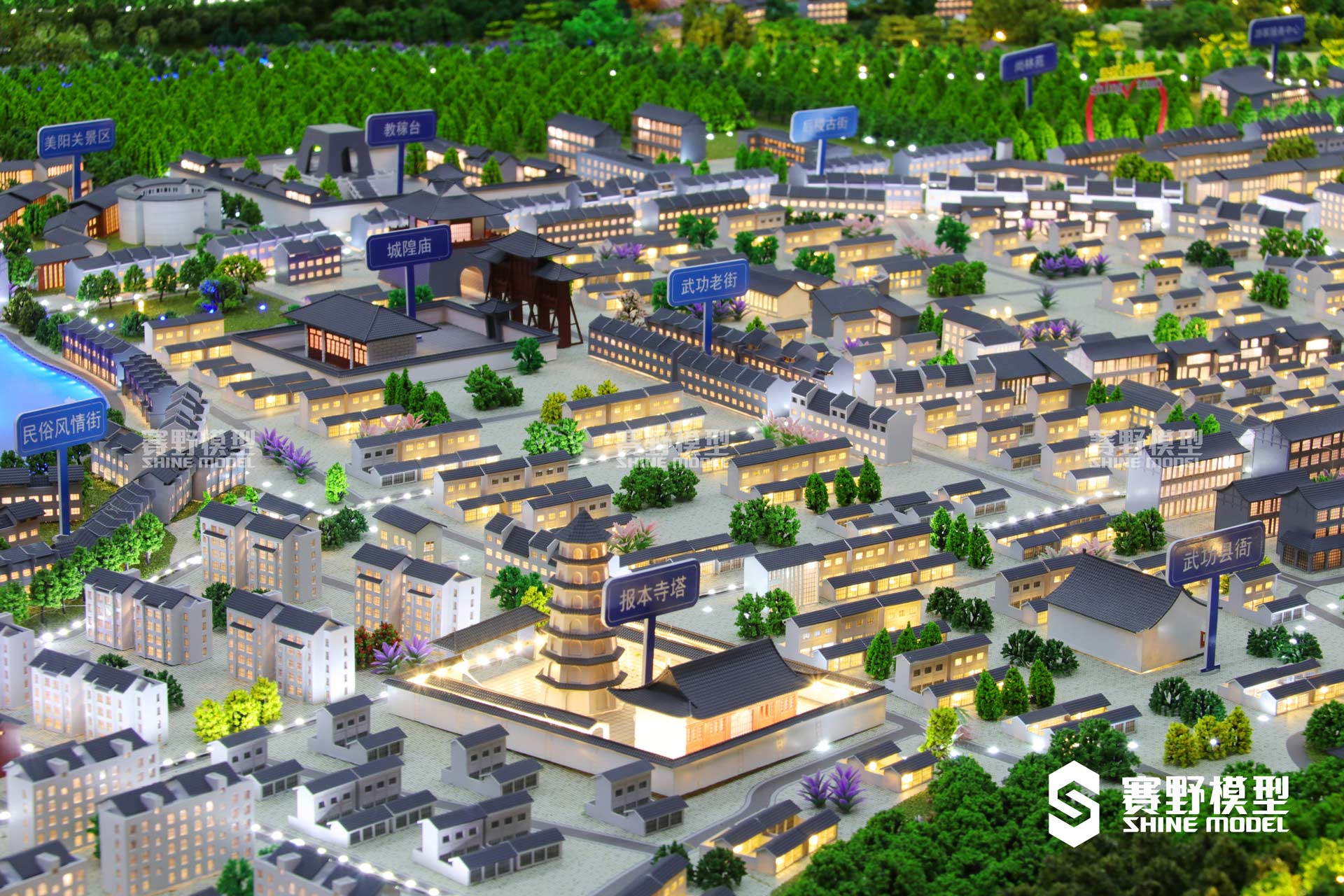 赛野模型在武功旅游规划馆设计中,以历史文化元素为模型设计的主要元素,与展厅的设计理念相结合,整体打造武功古城旅游规划馆。