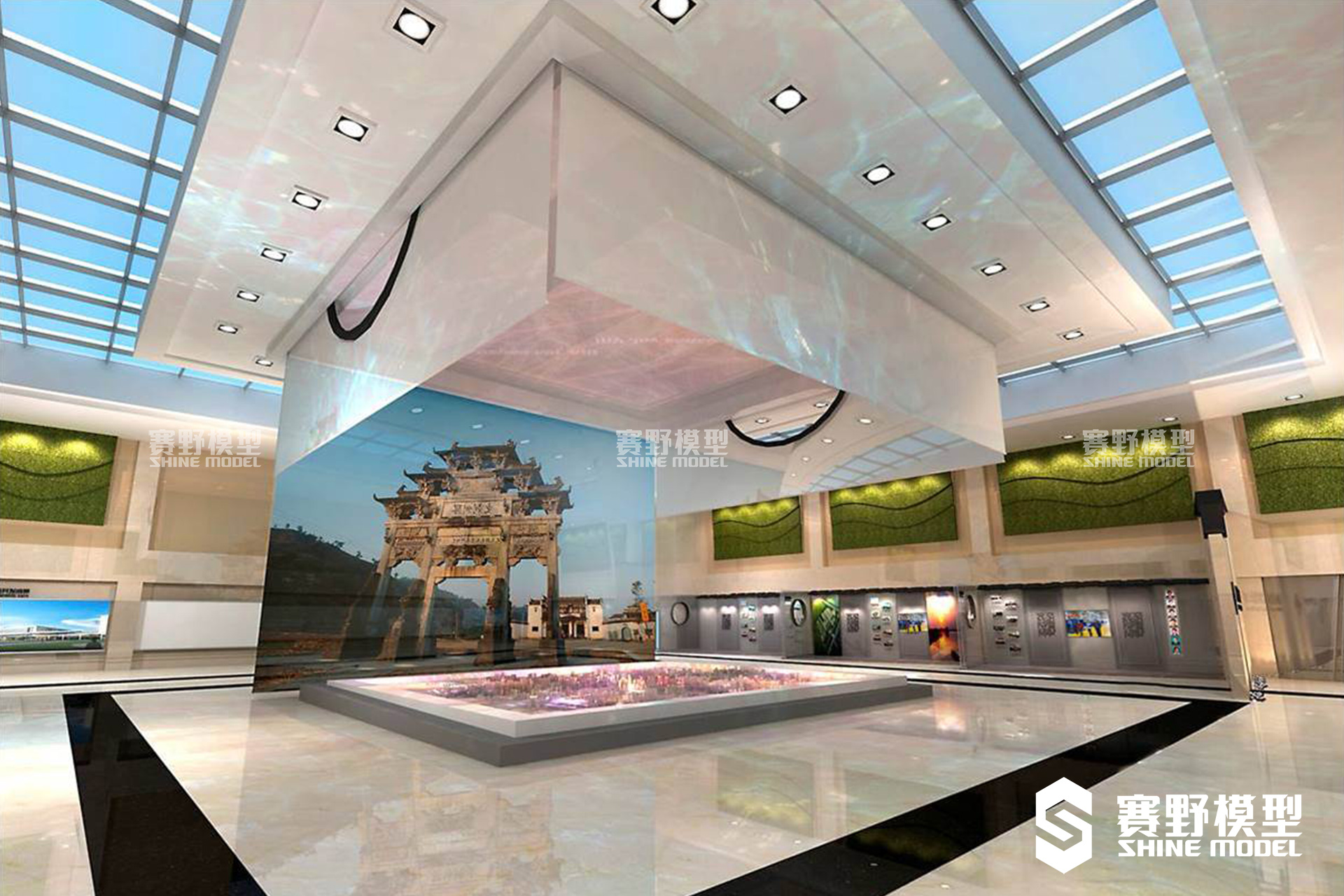 在保留原展馆动态数字模型、LED拼接、智能互动屏等出色的展示手段基础上,结合“创新、环保、再利用”的设计理念,运用可升降式帷幔、多媒体互动系统、投影式数字沙盘、多通道投影图像拼接、立体空间三维音效、智能化媒体设备控制等技术,在传统的物理沙盘基础上,增加多媒体展示与互动功能,充分体现新站区的区位特点、配套设施、项目特色等信息。